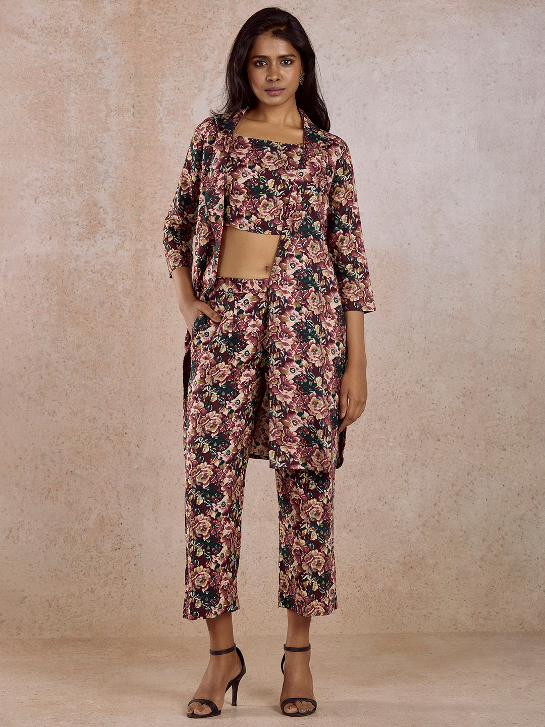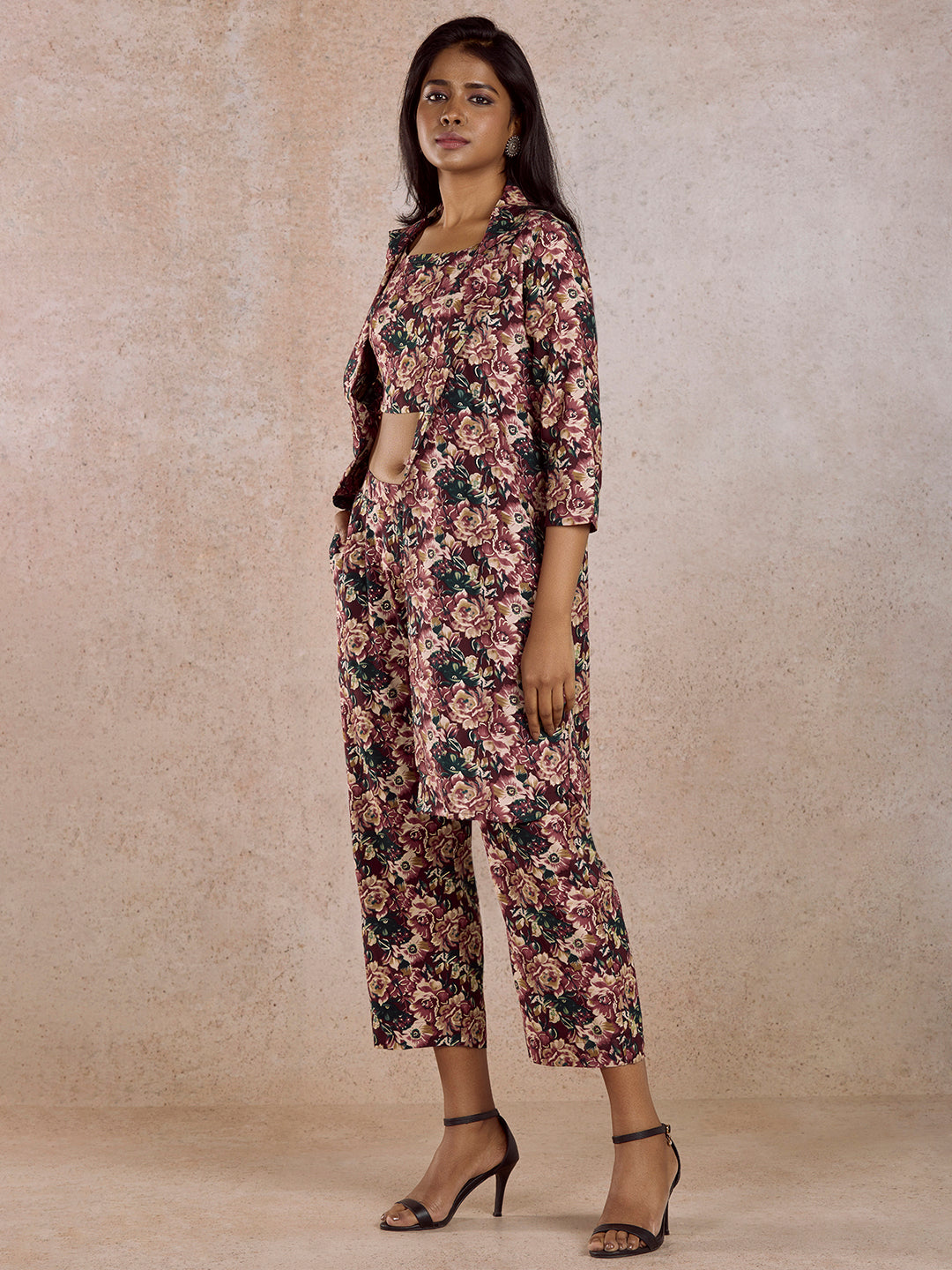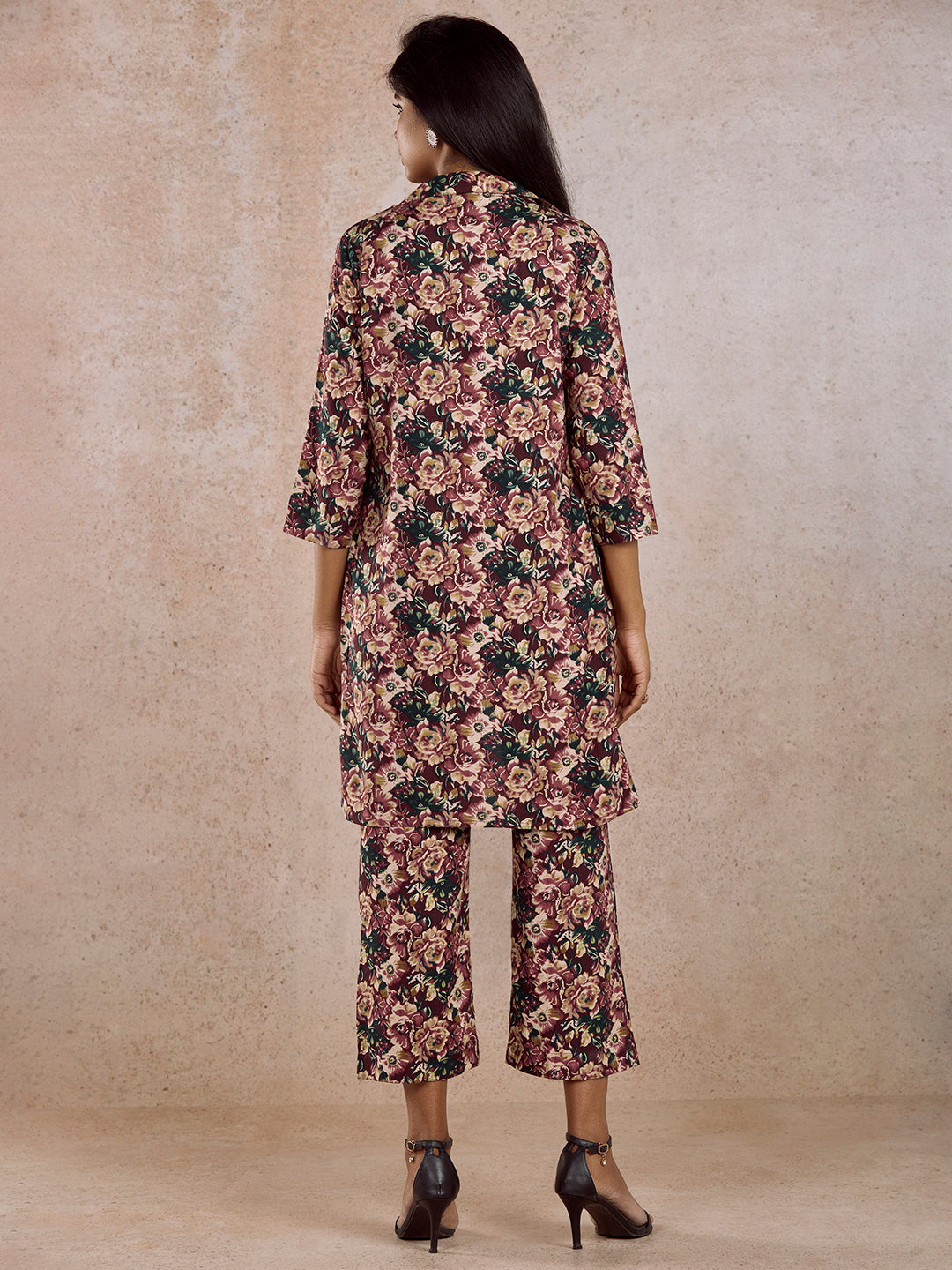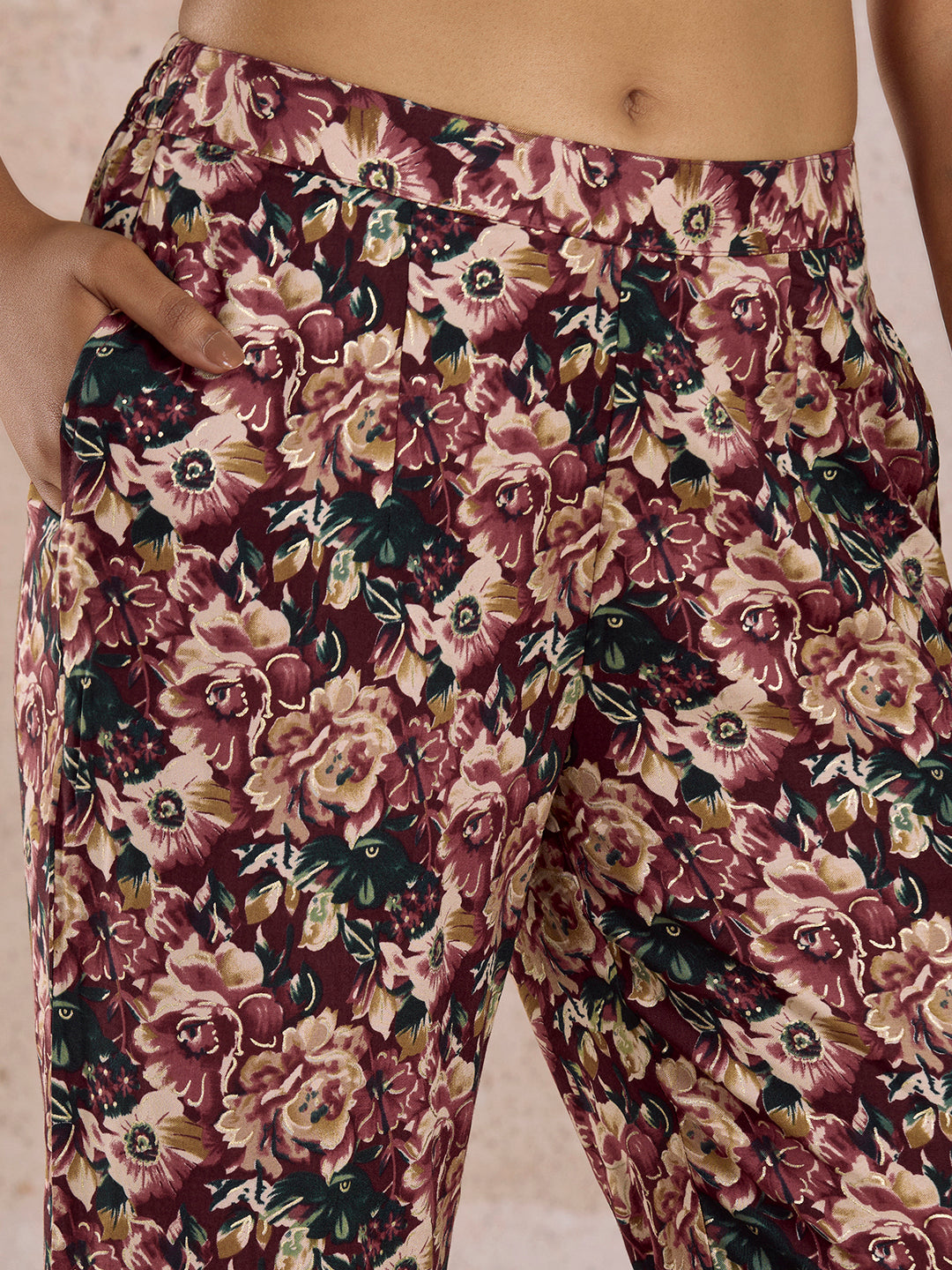 Indigo Printed Cotton Gathered Kurta-Dhoti Pant Set